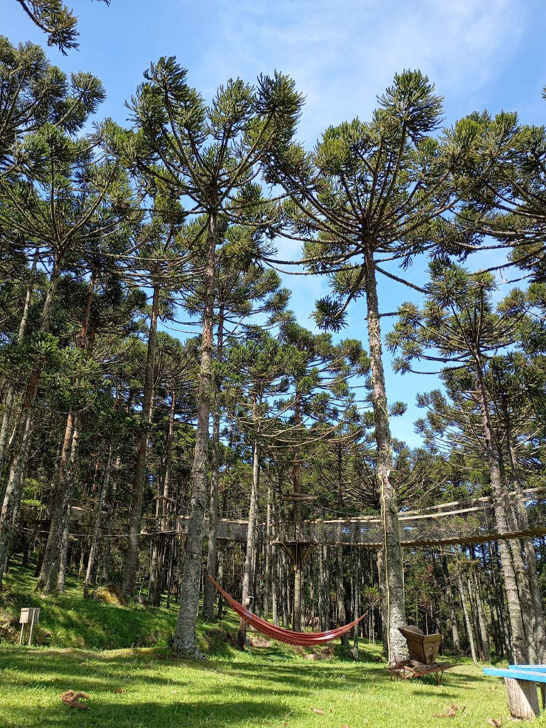 Para quem gosta de aventura, a experiência vai além da hospedagem: café da manhã delicioso e passeios, como cavalgadas, além de atrações que despertam a adrenalina. O balanço infinito rende fotos incríveis com uma vista privilegiada, enquanto o arvorismo, a tirolesa, a skybike e o circuito do parque convidam a explorar a natureza e viver momentos intensos em meio aos cenários da Terra dos Cânions. O espaço também conta com restaurante, quiosque e um galpão de eventos com estrutura de cozinha comunitária, liberado para quem quiser preparar uma refeição ou fazer um churrasco. Nos momentos mais tranquilos, dá para aproveitar o lago para pescaria no sistema pesque e solte, o campo de futebol, os espaços para peteca e vôlei ou até jogos como baralho, uno e bingo. E quando o dia termina, o fogo de chão e o pôr do sol criam aquele clima serrano que faz tudo valer ainda mais a pena.