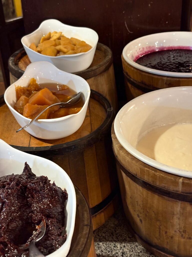 As sobremesas? Um espetáculo à parte, com opções clássicas da culinária regional, como a ambrosia, sagu, o doce de gila e o doce de abóbora, preparados com aquele sabor caseiro que remete aos doces de vó e encerra a refeição com um toque de memória afetiva.