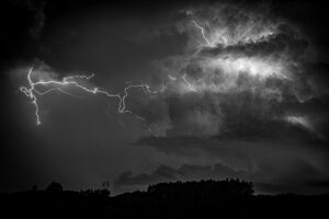 Ao longe, o céu escurece, saindo de um cinza tímido para uma escuridão de promessas.